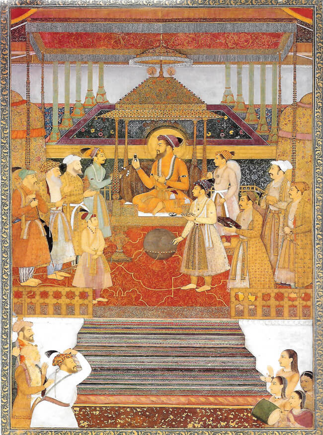 Photo above:- Shah Jahan on the Peacock Throne. Mughal India, 1639 CE. Source:- San Diego Museum of Art, California.